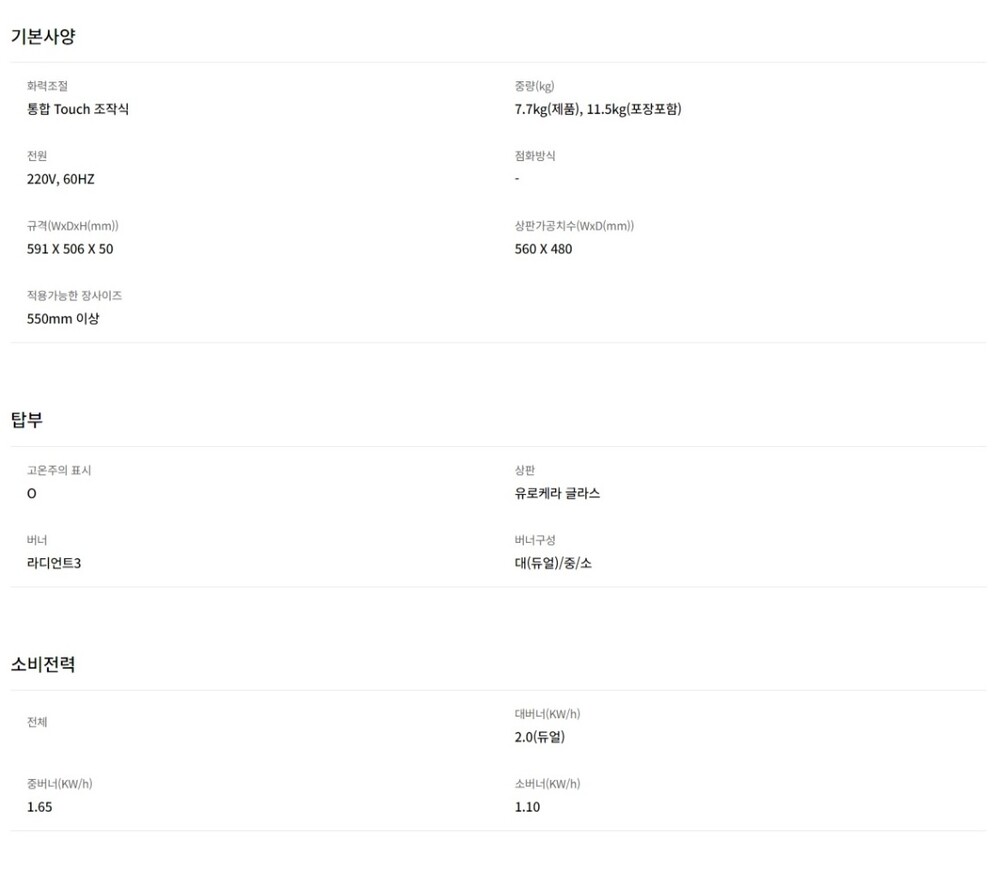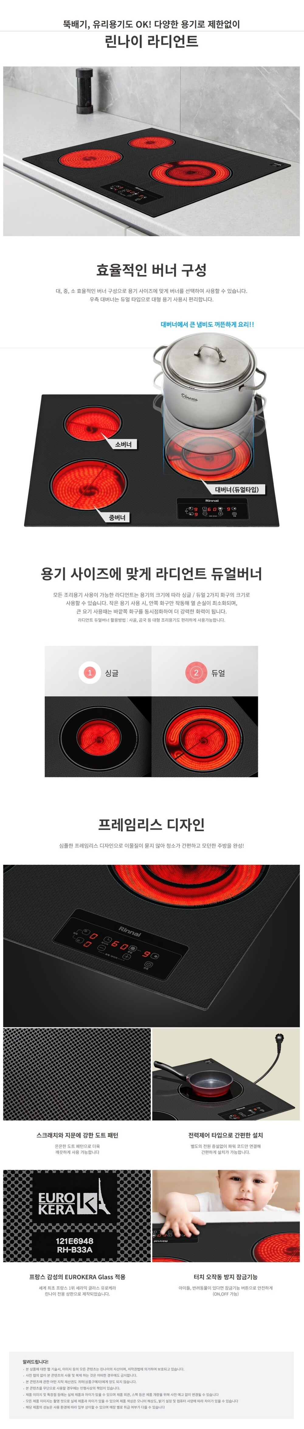 TOUCH / 듀얼 라디언트(우측 대버너) 프레임리스 디자인 / 타이머,잠금기능
